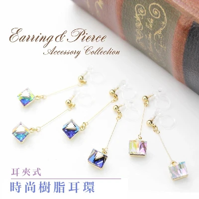 日本直送|立方搖擺耳釘 精緻可愛耳釘 樹脂耳環 防過敏 女款 華奢 時尚 立方 閃光 透明 樹脂 長款 搖擺