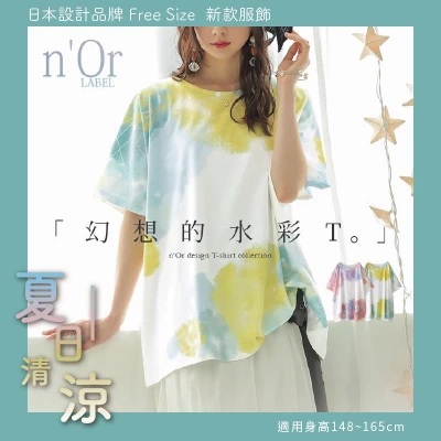 日本直送|n'OrLABEL水彩衣 春夏最新款 短袖 五分袖 寬領T恤 水彩畫 春季 夏季 t恤 透氣 修身 女性 服飾
