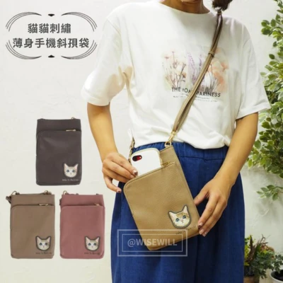 日本直送|貓貓刺繡 薄身手機斜孭袋 智能手機袋 單肩包 包包 貓咪 貓咪包包 可愛包包 時尚