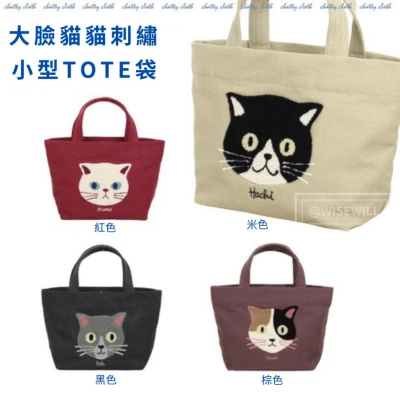 日本直送|大臉貓貓刺繡 小型TOTE袋 包包 手提包 手提袋 貓咪刺繡 禮品袋 女裝袋 收納包 小手提