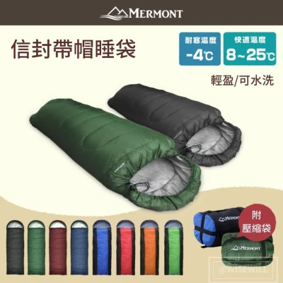 日本直送|MERMONT 輕盈睡袋 可水洗 戴帽 臨界溫度-4°C 防災用品 地震對策 登山 戶外 露營 爬山 旅遊