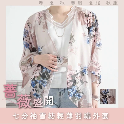 日本直送|薔薇盛開雪紡七分袖薄外套 羽織 寬袖 外套 女裝 春/夏/秋 遮陽薄外套 日本進口 原創設計