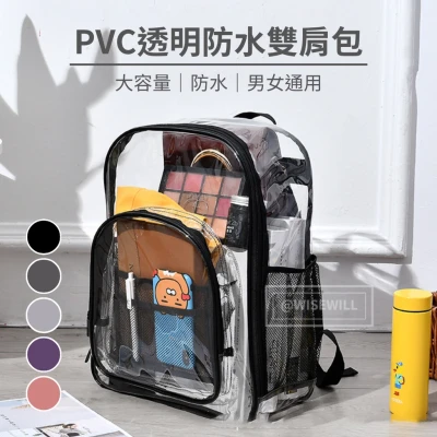 〈台灣公司現貨〉PVC透明防水雙肩包 防水包 透明包包 後背包 學生書包 書包 游泳包 化妝包 輕量 大容量 透明後背包