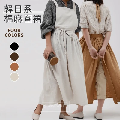 〈台灣公司現貨〉韓系棉麻圍裙 日式 簡約 全棉棉麻圍裙 廚房/花店/園藝/陶藝/戶外 工作服 工作圍裙 圍兜 純色 素色