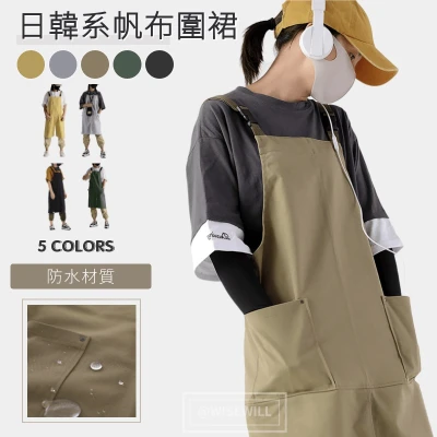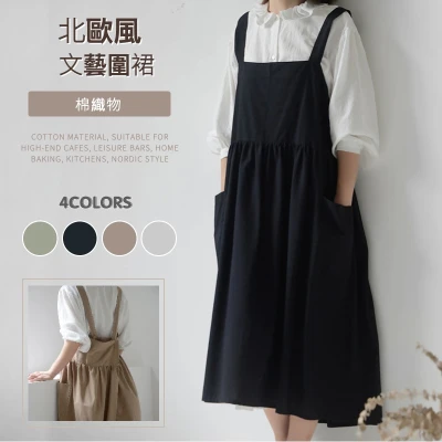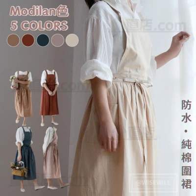 〈台灣公司現貨〉防水‧純棉圍裙 連衣裙式圍裙 素色 園藝 手工藝 廚房 花店 工作服 工作用圍裙 學生 北歐風