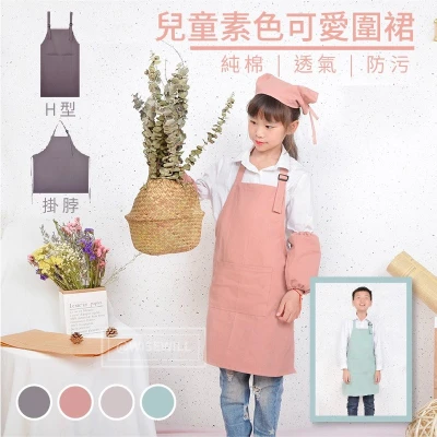 〈台灣公司現貨〉素色兒童圍裙 烘焙 圍裙 畫畫衣 兒童圍裙