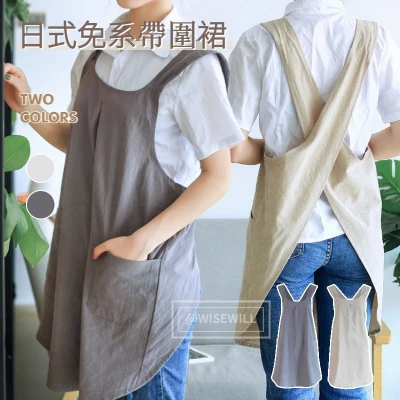 〈台灣公司現貨〉日式免系帶圍裙 家用圍裙 作業圍裙 日系簡約圍裙 棉麻圍裙居家花店工作服 咖啡圍裙 文青/幼兒園/作業用