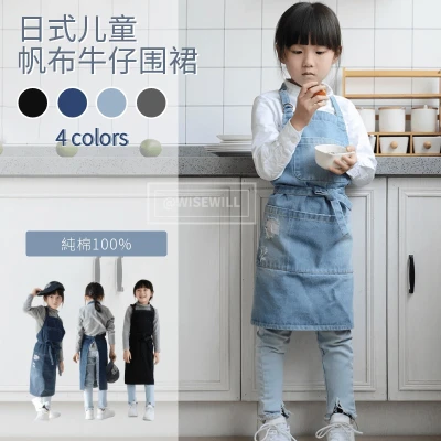 〈台灣公司現貨〉清貨超低價 日式兒童帆布牛仔圍裙 北歐 烘焙 時尚 全棉 美術 (適合120-135cm兒童) 交換禮物