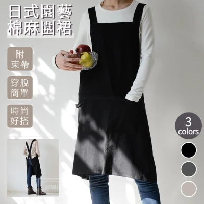 〈台灣公司現貨〉日式 簡約 園藝棉麻圍裙 復古 男女居家圍裙 日式棉麻圍裙 圍裙 工作服 咖啡廳 園藝 雙肩圍裙 素色