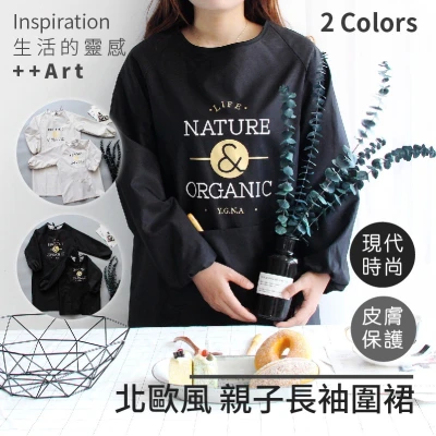 〈台灣公司現貨〉北歐風 親子長袖圍裙 防水 防油 畫畫 成人兒童新款長袖圍裙 防疫反穿圍裙 一件式圍裙 幼兒園 料理教室