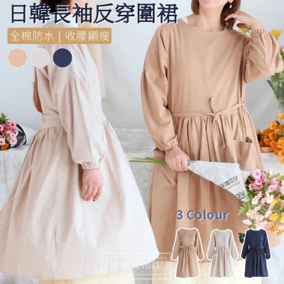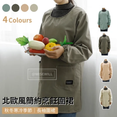 〈台灣公司現貨〉日韓長袖圍裙 可愛日系罩衣 大人款 秋/冬 森林系 長袖韓式家務圍裙 廚房圍裙 園藝圍裙 圍裙 煮菜圍裙