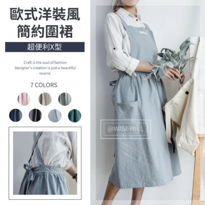 〈台灣公司現貨〉歐式洋裝風簡約素色圍裙 圍裙 大人用圍裙 歐風 簡約 素色 園藝 插花 咖啡廳 陶藝 繪畫 X型圍裙