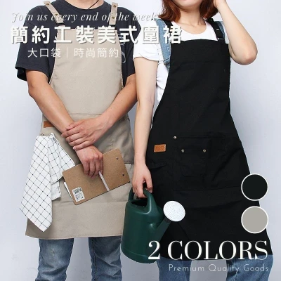 〈台灣公司現貨〉簡約素色美式工裝圍裙 男女通用 簡約素色 工裝圍裙 咖啡廳圍裙 工作服 圍裙 料理教室 幼稚園 幼兒園