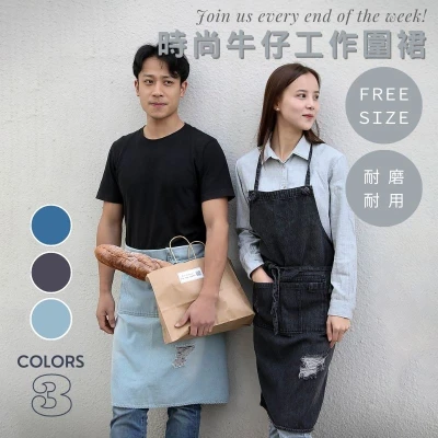 〈台灣公司現貨〉FULIKI 牛仔半身圍裙 純棉圍裙 100%棉 工作圍裙 餐廳 花店 咖啡店 廚房 咖啡廳服務員圍裙