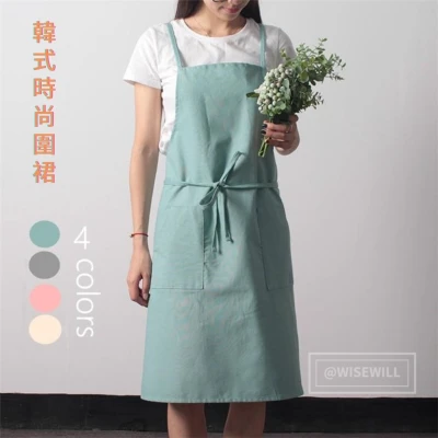 〈台灣公司現貨〉韓式時尚圍裙 100%棉 可選4色 餐飲專用 廚房用 奶茶/烘培/烧烤店店服 女性用 工裝圍裙 工作服