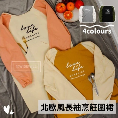〈台灣公司現貨〉北歐風長袖烹飪圍裙 長袖烹飪衣 烹飪圍裙 圍裙 簡約圍裙 上衣圍裙 口袋設計 穿脫簡單 內裡防水 防污