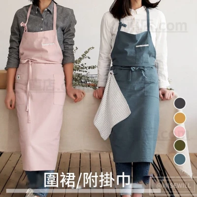 〈台灣公司現貨〉附掛巾圍裙 廚師圍裙 廚房/花店/園藝/陶藝/戶外 工作服 工作圍裙 圍兜 純色 素色