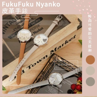 日本直送|日本知名品牌 FUKUFUKU Nyanko 皮革手錶 出清 大特價 皮革 手錶 貓咪 現貨
