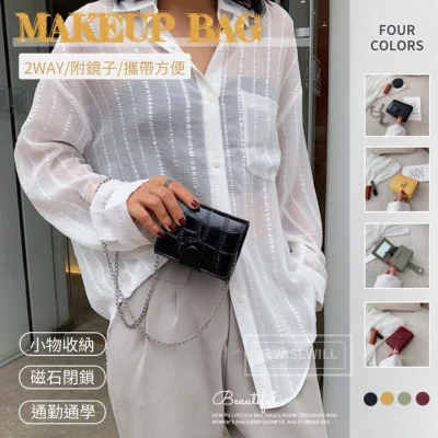 〈台灣公司現貨〉化妝包 小化妝包 迷你化妝包 鏡子化妝包 外出化妝包 質感化妝包 迷你口紅包 單肩些跨包 超輕便