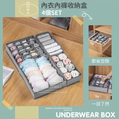 〈台灣公司現貨〉內衣內褲收納盒(4個set) 貼身衣物收納 內衣收納盒 內褲收納盒 襪子收納 衣櫃收納 收納盒 4個入