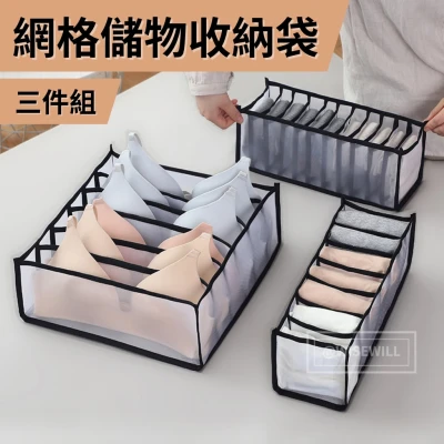 〈台灣公司現貨〉清貨超低價 網格儲物收納袋(三件組) 抽屜收納 收納內衣內褲襪子 收納袋盒 抽屜式收納盒袋 素色簡約