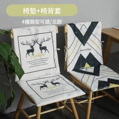 〈台灣公司現貨〉北歐高品質椅背套 + 椅墊 2件套 靠背椅 椅套 椅墊 靠背套帶固定繩 可拆卸 可水洗
