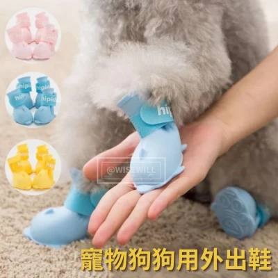 〈台灣公司現貨〉寵物用外出鞋 中/小型犬用外出鞋 下雨對策 柔軟材質 3色可選 4入裝 狗狗鞋子 寵物配件 寵物鞋 狗狗