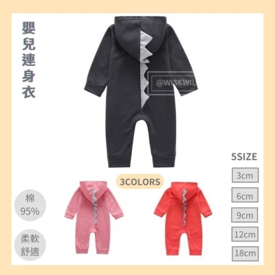 〈台灣公司現貨〉嬰兒連身衣 時尚恐龍造型嬰兒連身衣 嬰兒衣服 帶帽子 幼兒 長袖 3色可選