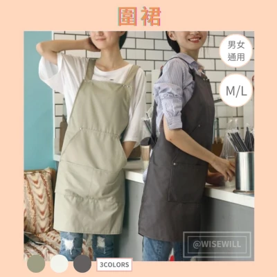 〈台灣公司現貨〉圍裙 簡約素色圍裙 男女通用 簡約素色 工裝圍裙 咖啡廳圍裙 工作服 圍裙 料理教室 幼稚園 幼兒園