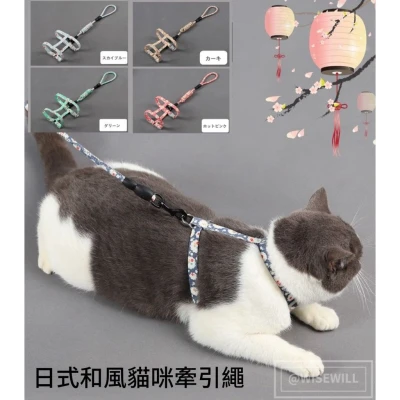 〈台灣公司現貨〉 日式和風貓用工字圓繩牽引繩 寵物可調節防掙脫胸背貓繩 貓用牽引繩 貓繩可調節寵物用品