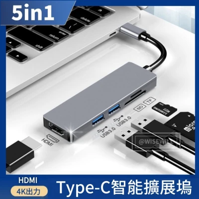 〈台灣公司現貨〉5in1 Type-C智能擴展塢 USB3.0接口 HDMI接口 SD卡槽 可接U盤 數據傳輸接口