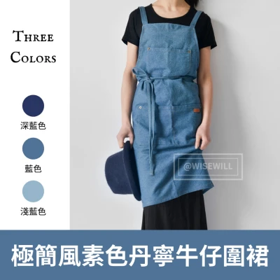 〈台灣公司現貨〉簡約風素色丹寧牛仔圍裙 北歐風 牛仔圍裙 ins風 韓版 圍裙 工作圍裙 牛仔風 咖啡廳 園藝 花藝