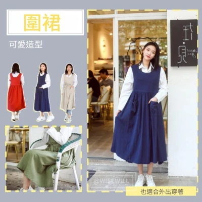 〈台灣公司現貨〉法式復古風圍裙 圍裙 復古 女居家圍裙 圍裙 工作服 咖啡廳 園藝 可愛造型 適合外出穿著 可遮住微胖