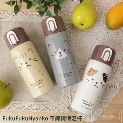 日本直送|FukuFukuNyanko 不鏽鋼保溫杯 保溫杯 棕色貓保溫杯 不鏽鋼 保溫保冷