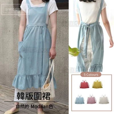 〈台灣公司現貨〉韓版圍裙 100%棉 時尚長款圍裙 長款圍裙 女居家圍裙 工作服 咖啡廳 園藝 可愛造型