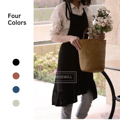 〈台灣公司現貨〉簡約素色裙襬圍裙 荷葉邊 北歐風 簡約 素色 工作圍裙 插花 園藝 手工藝 陶藝 咖啡廳 女用圍裙 圍裙
