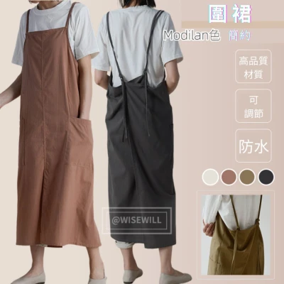〈台灣公司現貨〉防水‧純棉圍裙 素色 園藝 手工藝 廚房 花店 工作服 工作用圍裙 全棉圍裙 學生 防水圍裙