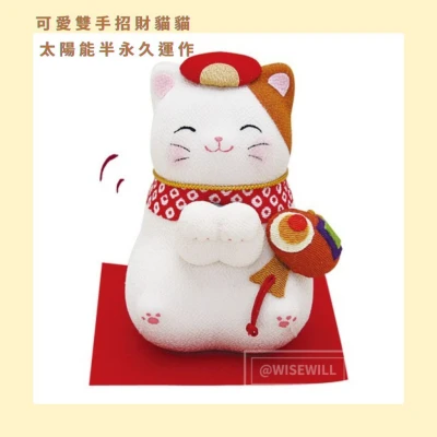 日本直送|日本製【開店必備】可愛雙手招財貓貓 太陽能半永久運作 居家裝飾 開店送禮 招財 玄關擺飾 招財貓