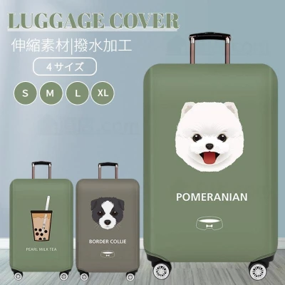 〈台灣公司現貨〉可愛行李箱套 行李套 行李箱配件 伸縮 防污 防刮 防盜 時尚 旅行箱 登機箱 邊境牧羊犬 博美 珍奶