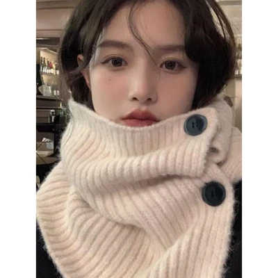 日本直送|GAL 羊毛混紡針織圍巾 披肩 鈕扣款 時尚 百搭 保暖 防寒 獨特 魅力 可愛 女性 送禮