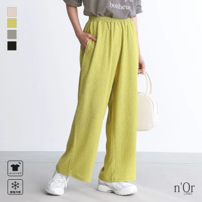 日本直送|n'OrLABEL 紋理直筒寬褲 好洗不皺 百搭 時尚 涼感 春夏 好穿 女性 職業 上班