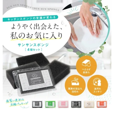 日本直送|SunsunSponge 桑桑海綿4個裝 廚房海綿 耐用 易清洗 餐具 洗碗 浴室 家庭必備 日本IG高話題