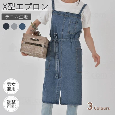 〈台灣公司現貨〉牛仔圍裙 男女通用X型圍裙 時尚多功能口袋 可調節 防污 工作圍裙 易脫穿 家用 保育員 花園 咖啡廳