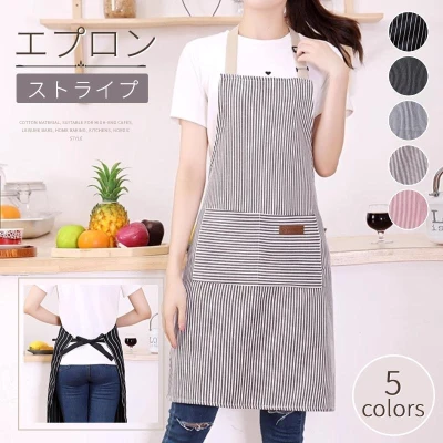 〈台灣公司現貨〉條紋圍裙 速乾 肩帶 口袋設計 男女皆宜 工作圍裙 條紋圖案 前掛 修身印花圍裙 長款 條紋 頸掛圍裙