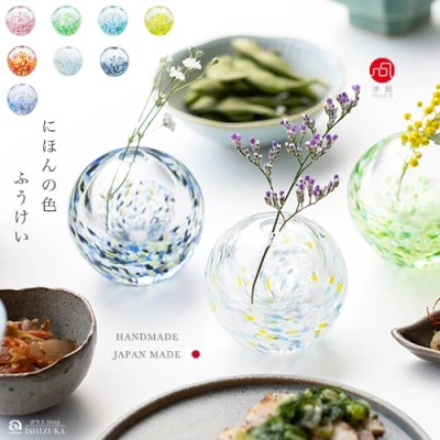 日本直送|津輕琉璃一輪花瓶 華麗 小巧 夏季 日本風景 一輪插花 禮品 花器 迷你花瓶 石塚玻璃 煙火 手工製作 高級感
