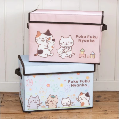 日本直送|FukuFukuNyanko 福庫貓 不織布收納盒 可折疊 兩側握把 輕巧不占空間 衣物 居家收納 可愛