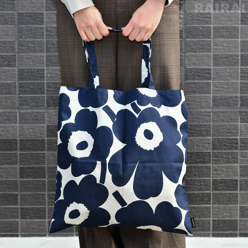 這款是以marimekko代表性的「Unikko」花卉圖案設計而成的,採用棉質面料,大型罌粟花以深藍色繪製,色調較為穩重,因此深受各年齡層和性別的喜愛。